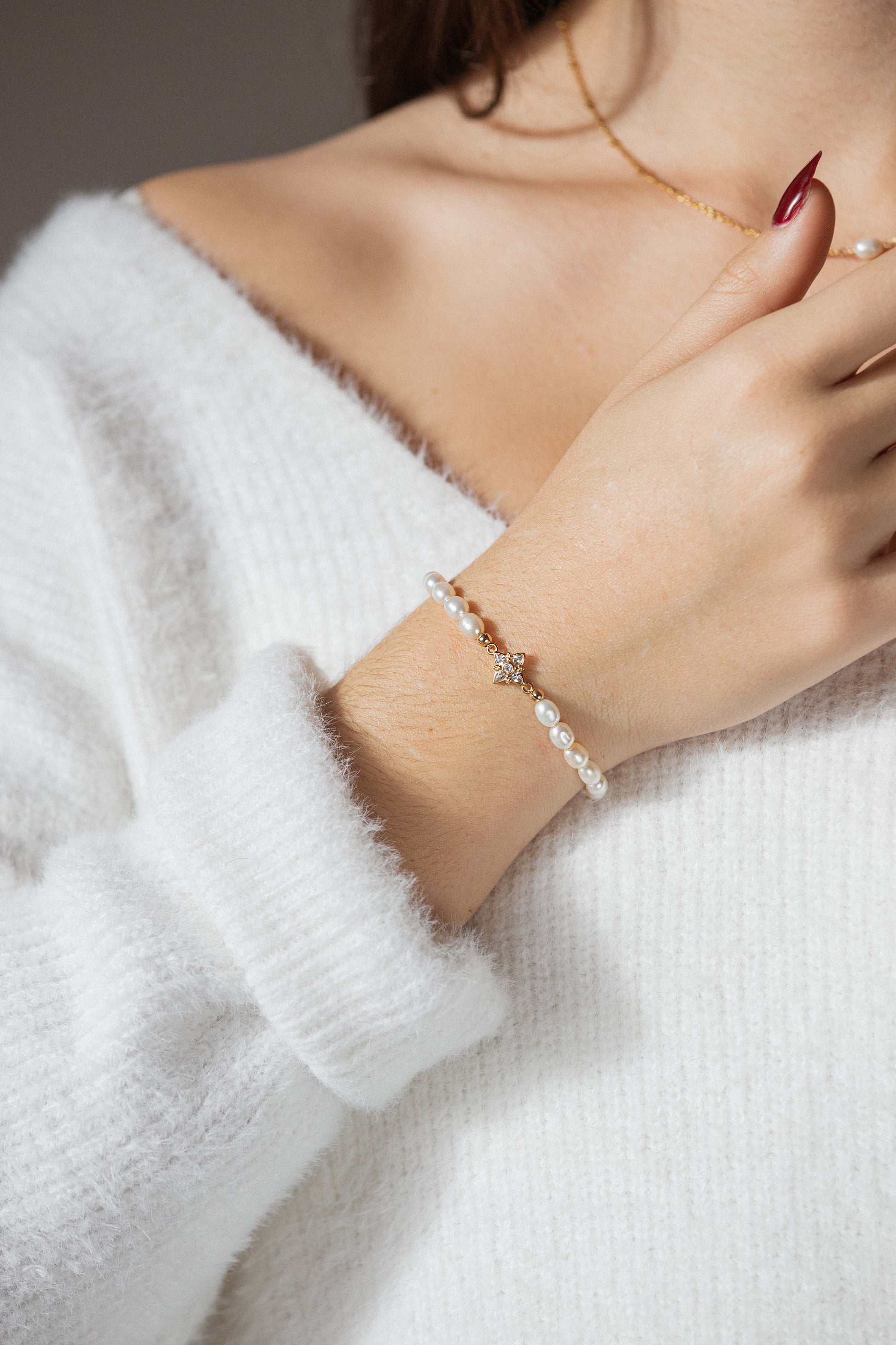 Composé exclusivement de perles d’eau douce soigneusement sélectionnées, le bracelet Bella allie élégance naturelle et praticité grâce à son design élastique ultra-résistant.
