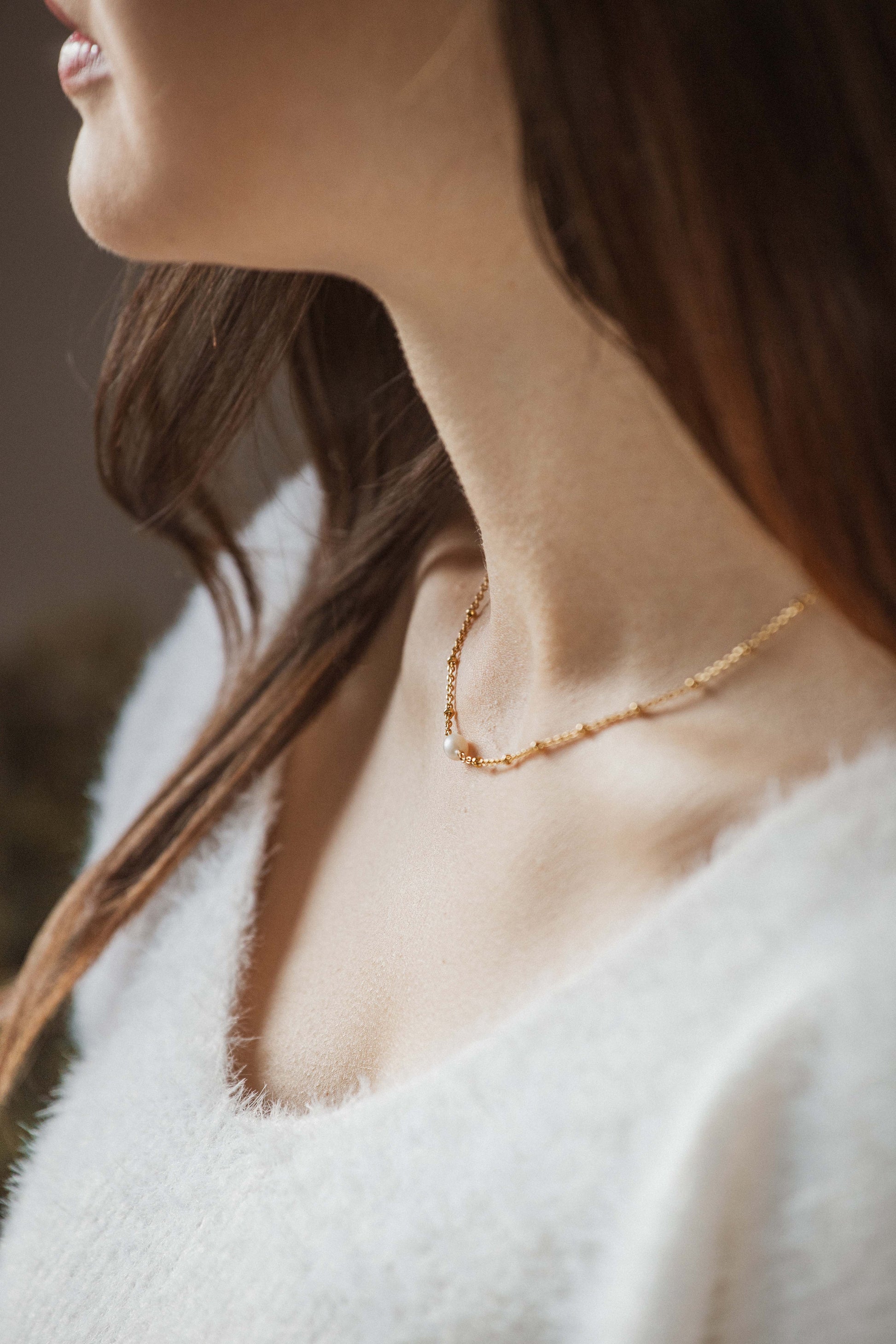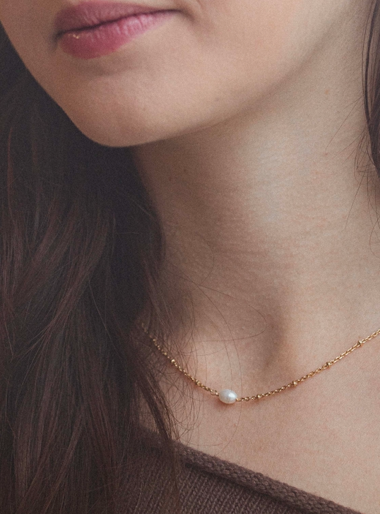 L’éclat de la tradition : La perle lumineuse et la chaîne dorée s’associent harmonieusement pour sublimer votre décolleté avec une touche de sophistication.